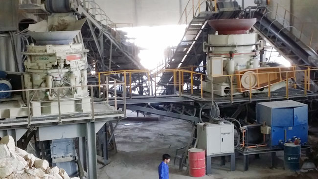 2014年6月,设备安装到位正式投产,山美圆锥破和欧美某品牌圆锥破并驾齐驱,共同担任生产线中的二破重任。